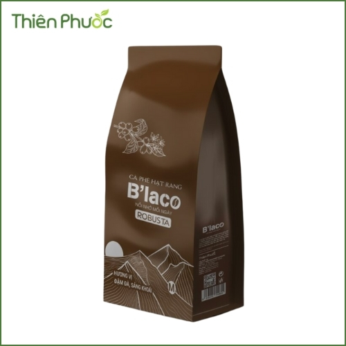 - Đóng gói: Cà phê nguyên hạt B'laco Robusta được đóng gói trong bao bì kín khí, giúp bảo quản hương vị và chất lượng cà phê trong suốt thời gian sử dụng. Bao bì đẹp mắt và chắc chắn, phù hợp cho việc bảo quản lâu dài và làm quà tặng sang trọng.